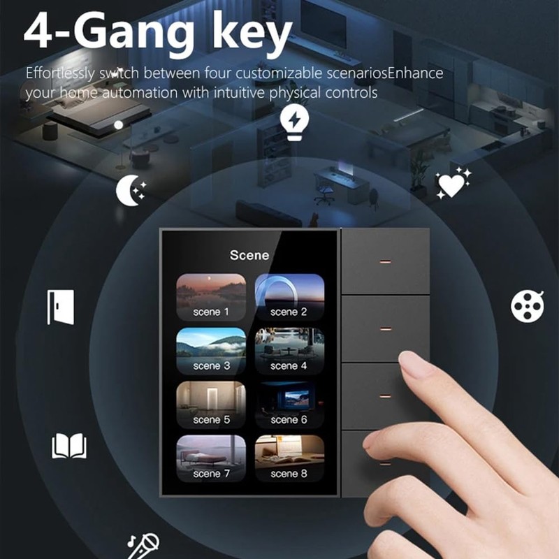 - 4-way switch:Effortlessly switch between four customizable scenariosEnhance your home automation with intuitive physical controls