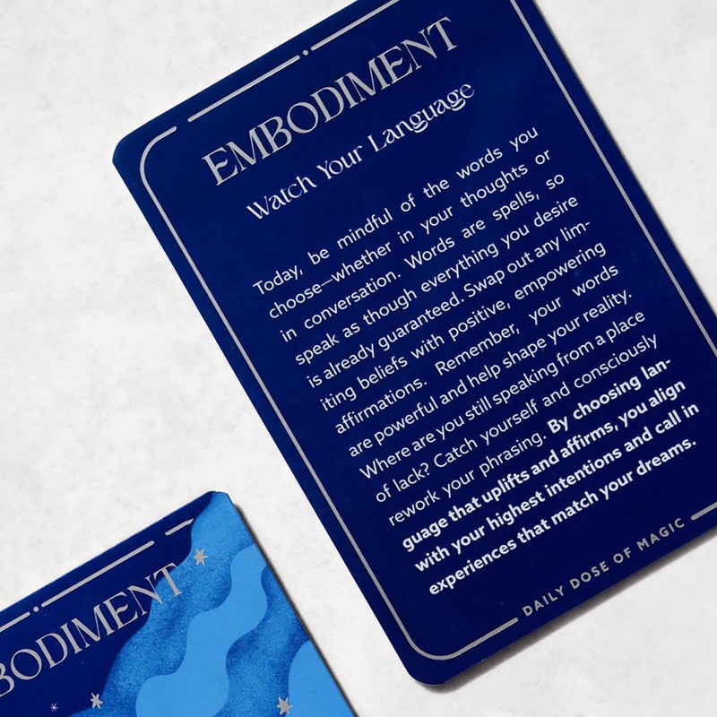 This is how magic is made. Experience the power of manifestation with the Daily Dose of Magic Card Deck. Let the cards guide you in setting intentions, embodying gratitude, reflecting on your journey, and gaining wisdom—the perfect tool to help you bring your dreams to life. This deck is designed to offer inspiration across five key areas: Intention, Embodiment, Gratitude, Reflection, and Wisdom, guiding you as you manifest your dream life into reality. The Daily Dose of Magic Card Deck was created by Victoria Jackson (The Manifestation Collective) and illustrated by KJ Parish.