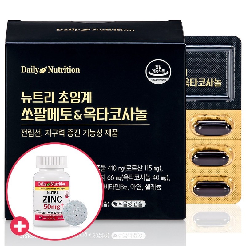 Daily Nutrition Nutri Supercritical Saw Palmetto Octacosanol / Prostate Saw Palmetto Vegetable 60 Capsules Zinc Selenium Supplement 1 Box 2 Months / 데일리뉴트리션 뉴트리 초임계 쏘팔메토 옥타코사놀 / 전립선 소팔메토 식물성 60 캡슐 아연 셀레늄 영양제 1박스 2개월