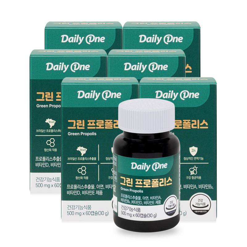 Daily One [On Sale] Daily One Green Propolis Chewable Brazilian Flavonoid 500mg / 데일리원 [온세일]데일리원 그린 프로폴리스 츄어블 브라질 플라보노이드 500mg X 60캡슐 6통