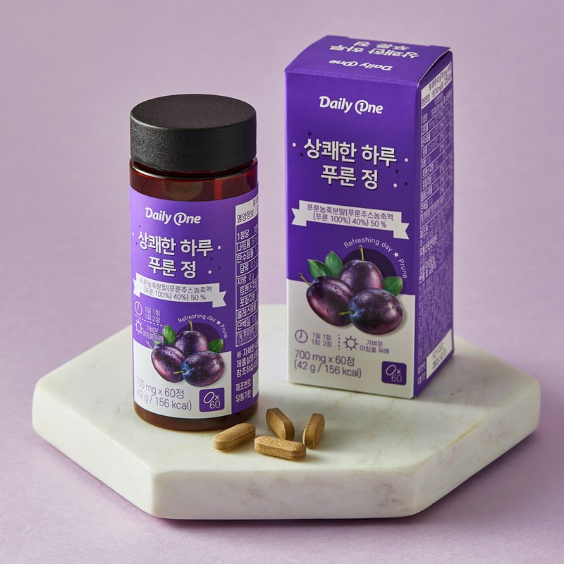 Daily One Refreshing Day Prune Tablets 42g, 60 tablets x 1 container, 1 month supply / 데일리원 상쾌한 하루 푸룬 정 42g 60정 x 1통 1개월분