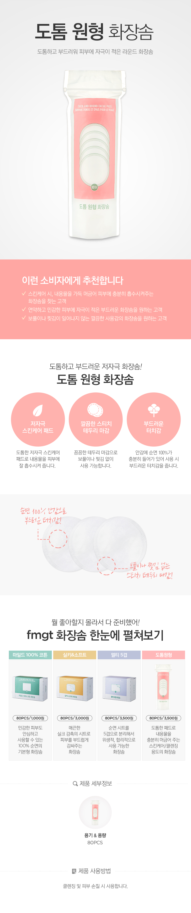 Daily Thick Round Cotton Pads, 80 Sheets / 데일리 도톰 원형 화장솜 80매