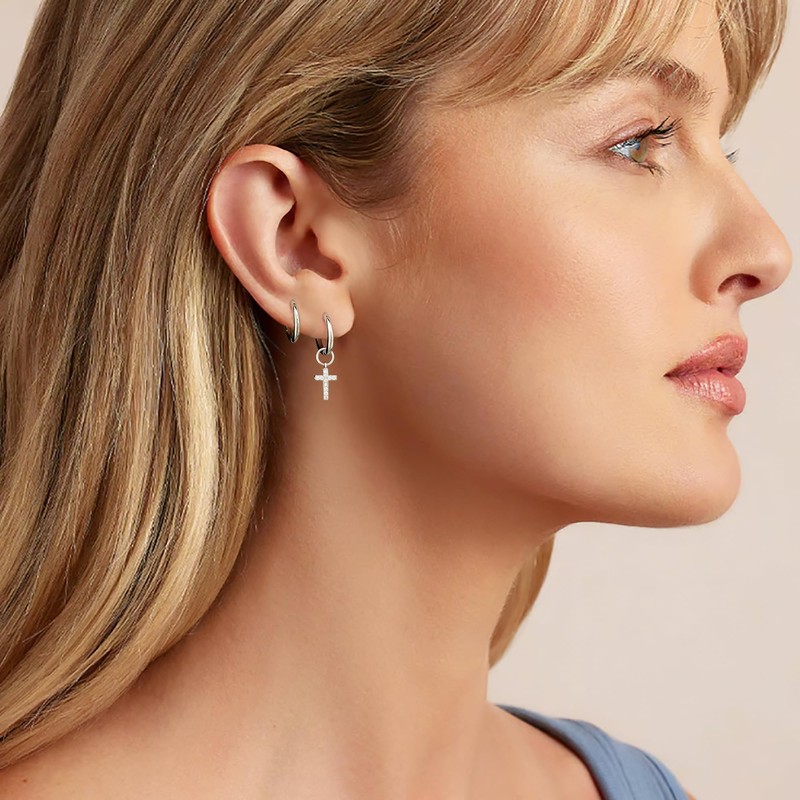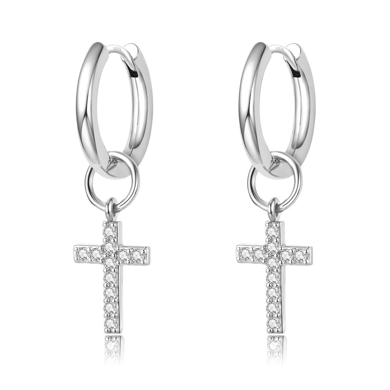 DAILY VIBES Silver Cross Dangle Earrings for Women Hypoallergenic Dainty Silver Plated Mini Cubic Zirconia Cute Drop Cartilage Small Huggie Hoop Earrings for Women