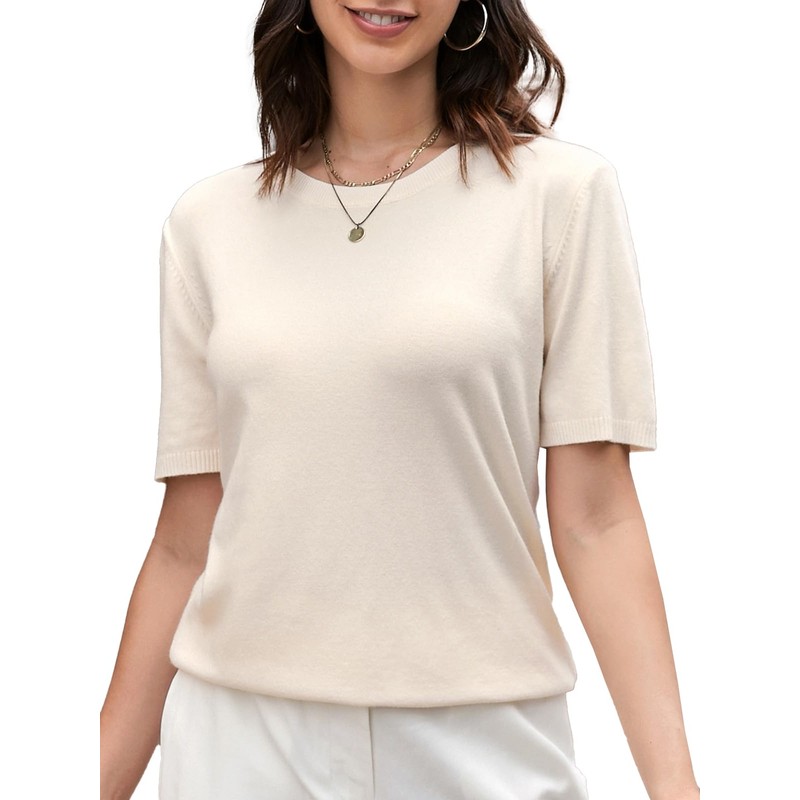 DAIMIDY Womens Wool Blend Sweater Soft Crew Neck Short Sleeve Pullover Knit Tops,A01 Beige,Medium