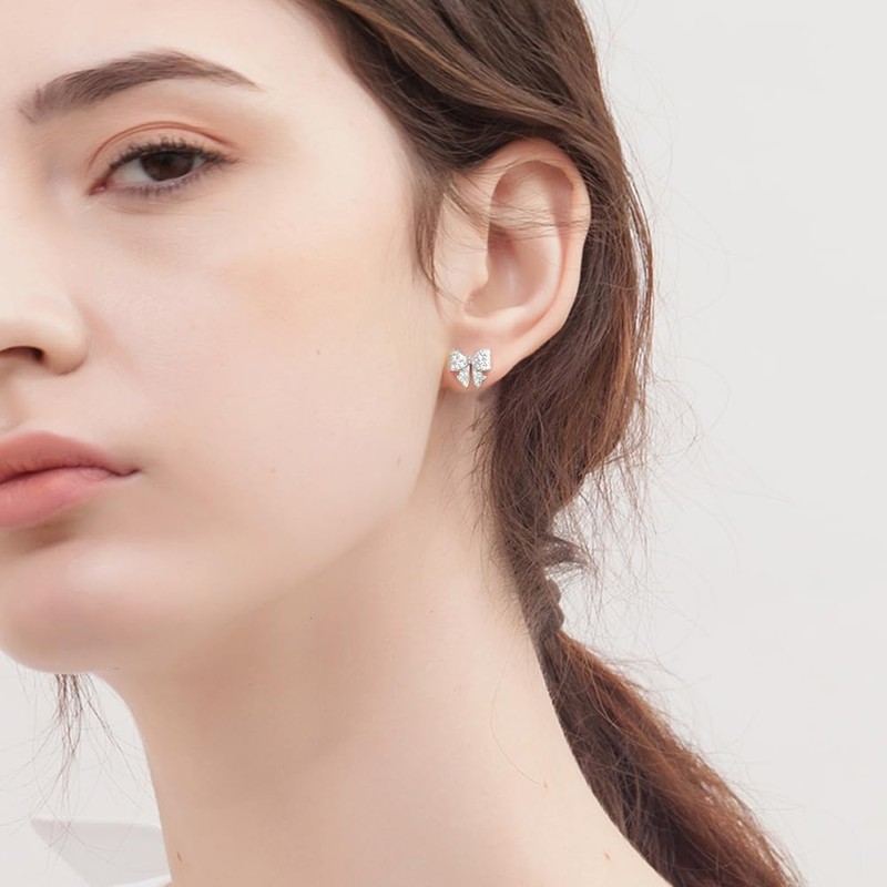 - Elegant Design: Delicate Bow-Shaped Studs Featuring Sparkling Cz Cubic Zirconia Crystals Create a Chic and Sophisticated Look