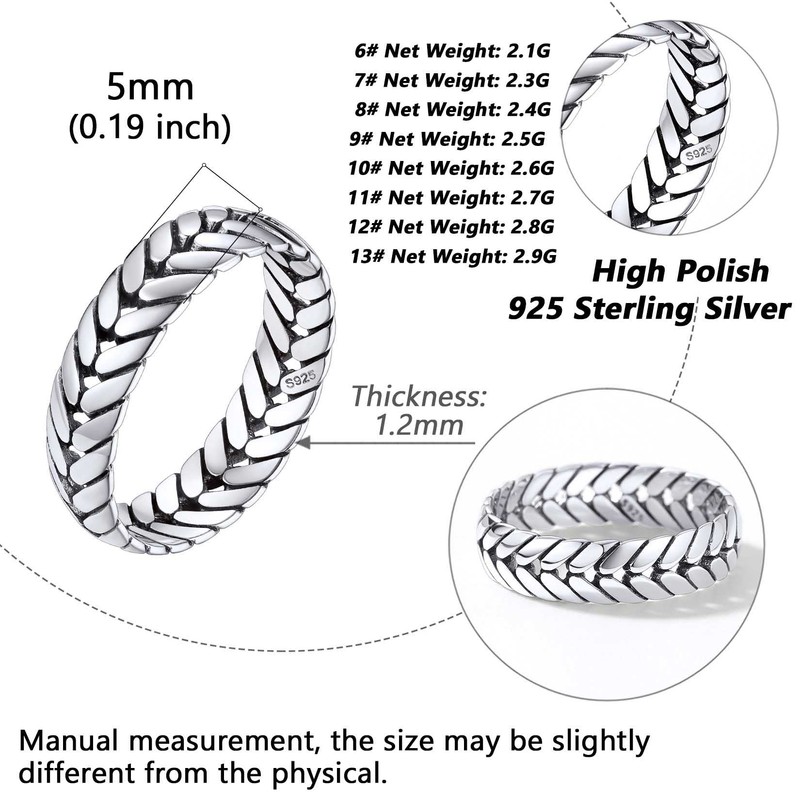 - 👍👍👍Wheat Chain Ring👍👍👍Made of hypoallergenic 925 sterling silver, nickle-safe, lead-safe, lasting color retention, no corrosion or tarnish, safe for your health and no green finger issues.