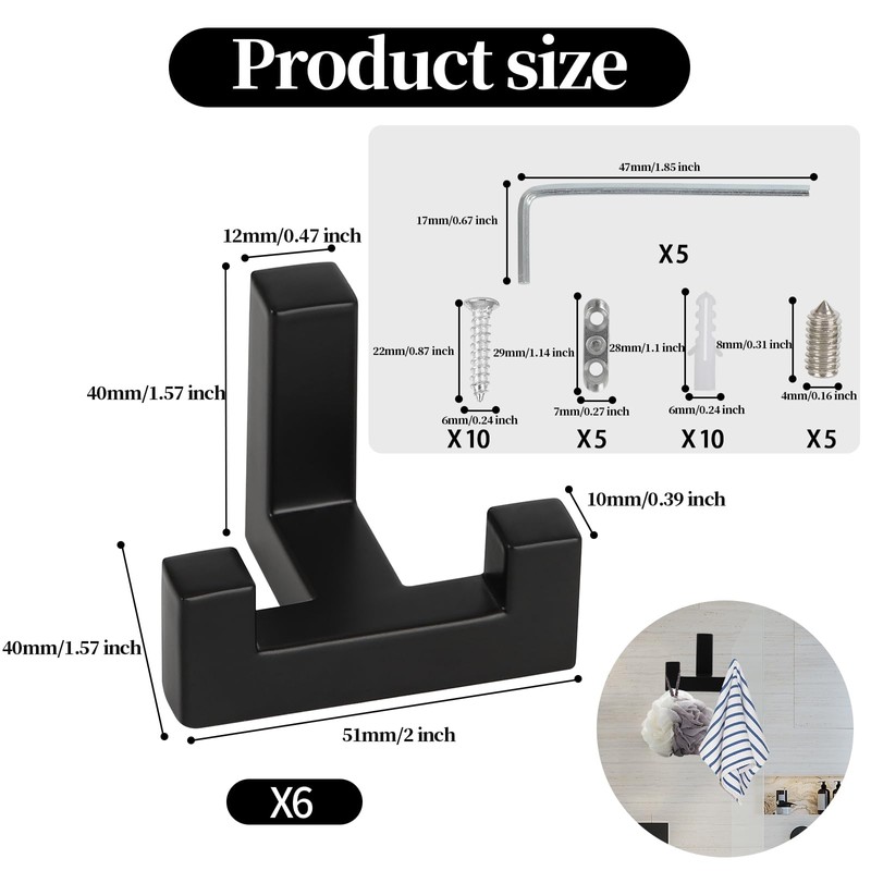 - Towel hook set included: in your set you will receive 5 black coat hooks, plus 10 sealing pipes, 10 screws, 5 fixed buckles for bedroom, 5 invisible screws and 5 L-shaped wrenches for attachment. They can be securely mounted on the wall, and the hooks are not only suitable for hanging items, but also match any other modern home decor