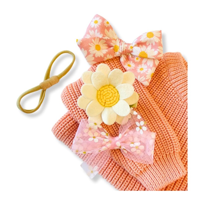 Daisies Hair Bows Set for Babies, Hair Clips and Headband Interchangeable Bow System, Toddler hair clips, Siblings Bows (Daisy Set)