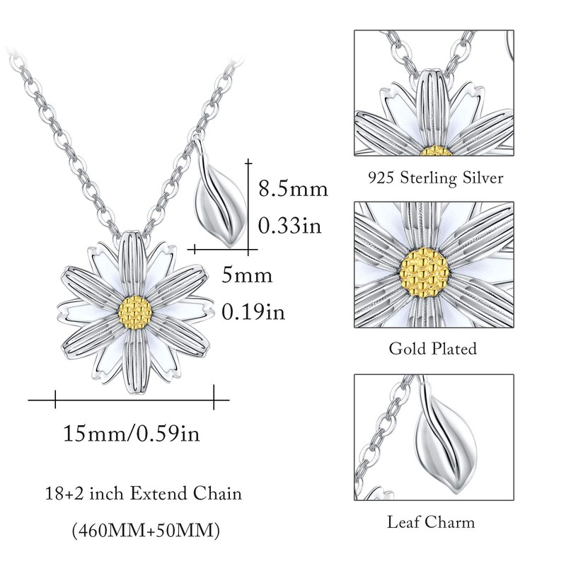 Daisy Necklace for Women 925 Sterling Silver Leaf Necklace Daisy Flower Charm Pendant Necklace for Women Girls Friends