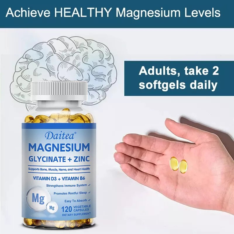 Daitea Magnesium Glycinate + Zinc Supplement - Supports Bone,Muscle,Ne