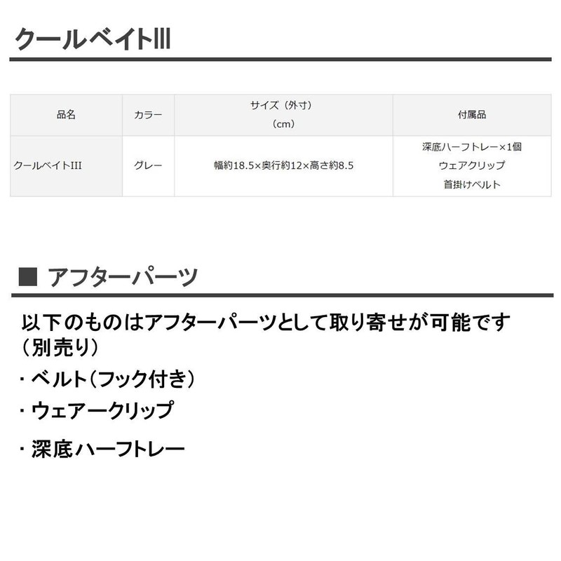 - Accessories: Deep bottom half tray x 1, wear clip, neck belt