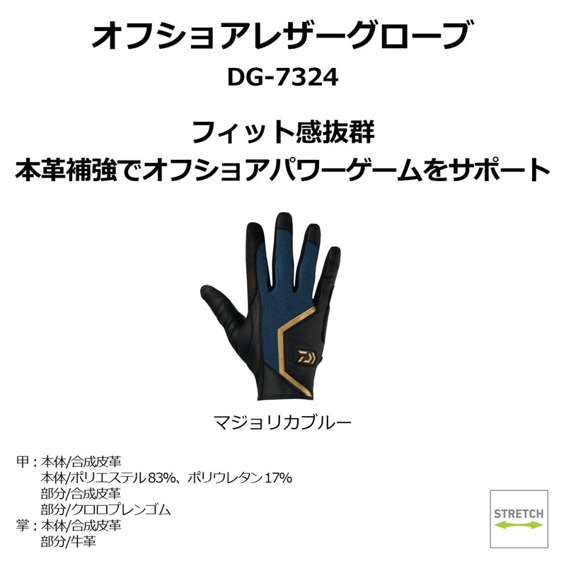 Daiwa DG-7324 Offshore Leather Gloves, Majolica Blue, XL