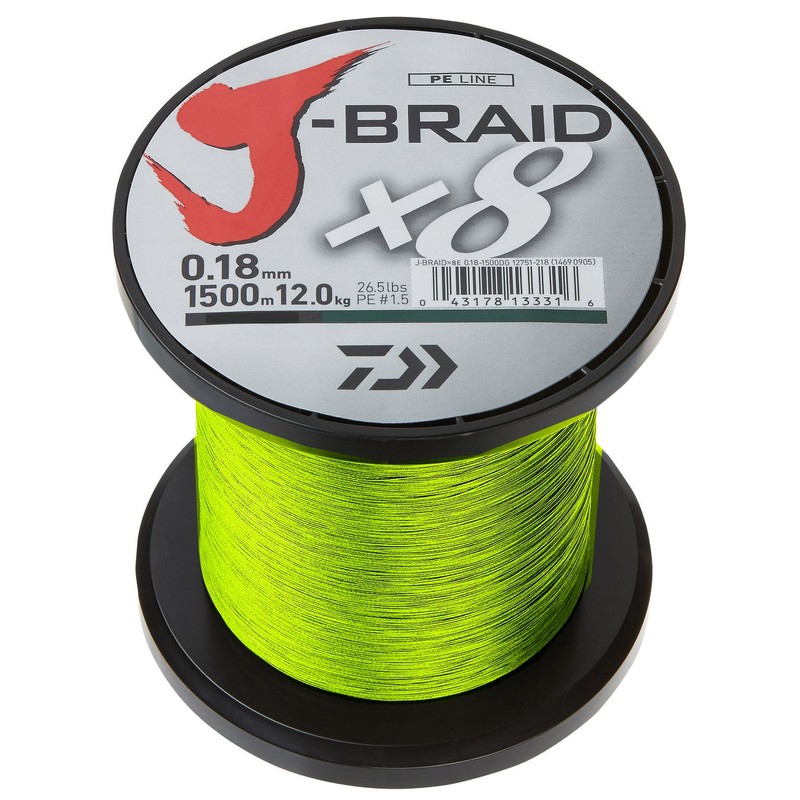 Daiwa J-Braid X8 0.22mm, 17,0kg/27,5lbs, 1500m chartreuse - braided Fishing line