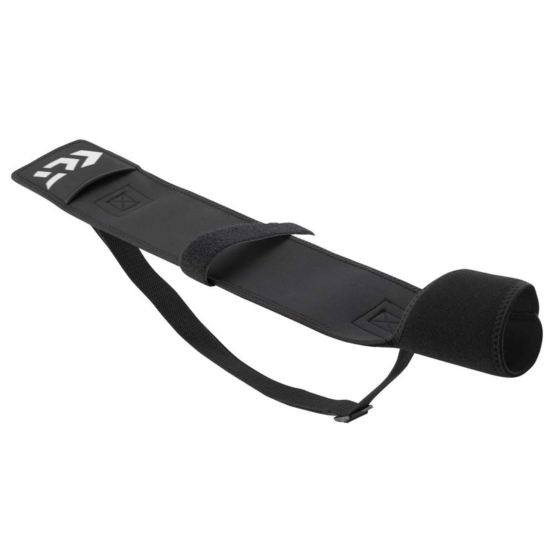 Daiwa Neoprene rod belt. Useful and affordable transport belt with shoulder strap for 2-piece rods. The rod can be quickly and easily inserted into the neoprene and the two rod parts do not chafe against each other - ideal when high-quality rods need to be transported. The rod belt can be folded very small in the water and requires little storage space. Material: 90 % neoprene, 10 % nylon, size: 78 cm. Box contents: 1 Daiwa neoprene rod belt