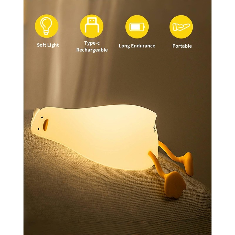 Daixinde Cute Lazy Duck Night Light, Lazy Duck Lamp, LED Squishy Existential Crisis Duck, Rechargeable Dimmable Duck Light Laying Down with 30 Minutes Timer & Touch Control for Bedroom Living Room