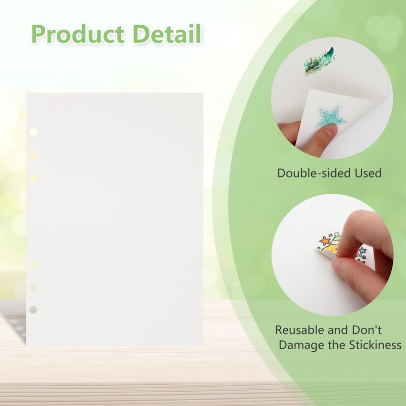Choose our sticker album pages, the double-sided design provides you with more space to store stickers. The material is similar to the back of the stickers, allowing for reuse without damaging the sticker's stickiness, making it great for sticker collectors. The color of this blank release paper is very soft, making it comfortable to look at, and it won't strain your eyes even with prolonged use. The usage steps are also very simple: just peel off the back of the sticker, stick it onto this reusable sticker paper, and then gently press to secure the sticker more firmly. When you need to use the sticker, just gently peel it off from the sticker storage paper. These blank binder refills can be placed in a 6-ring A5 binder to create a sticker collection, making sticker storage more convenient and organized while also allowing for quicker access to the stickers.