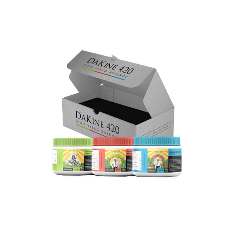 The Dakine 420 Nitro Nutrients Starter Kit contains 200 gr of Base, Grow and Bloom!
