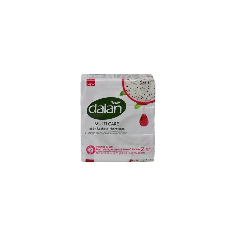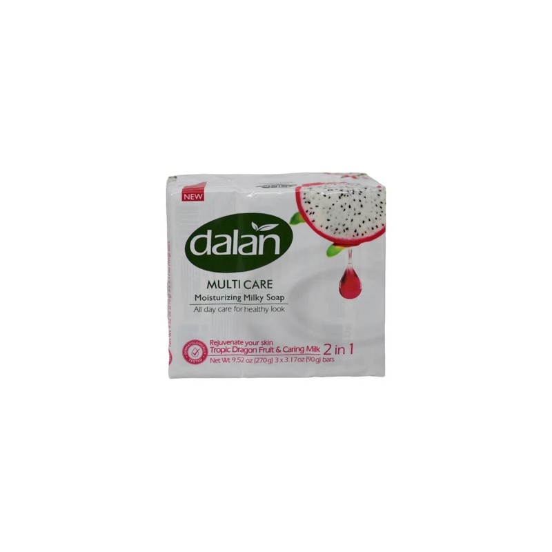 Dalan Multicare Moisturizing Milky Soap provides all-day care for a healthy look, rejuvenating your skin with every use. Infused with the essence of tropic dragon fruit and caring milk, this soap leaves your skin feeling soft and refreshed. Each bar weighs 3.17oz (90g), and the product is available in packs containing 3 bars. Perfect for maintaining moisturized and healthy-looking skin with a revitalizing effect.