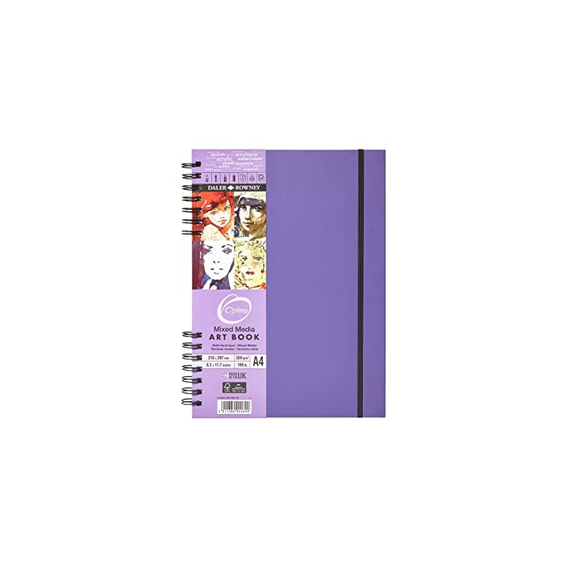 Daler-Rowney Cachet Lightly Textured 250gsm A4 Mixed Media Portrait Hardback Artbook, Elastic Closure, Amethyst Cover, 30 sheets, Ideal for Professional Artists & Students