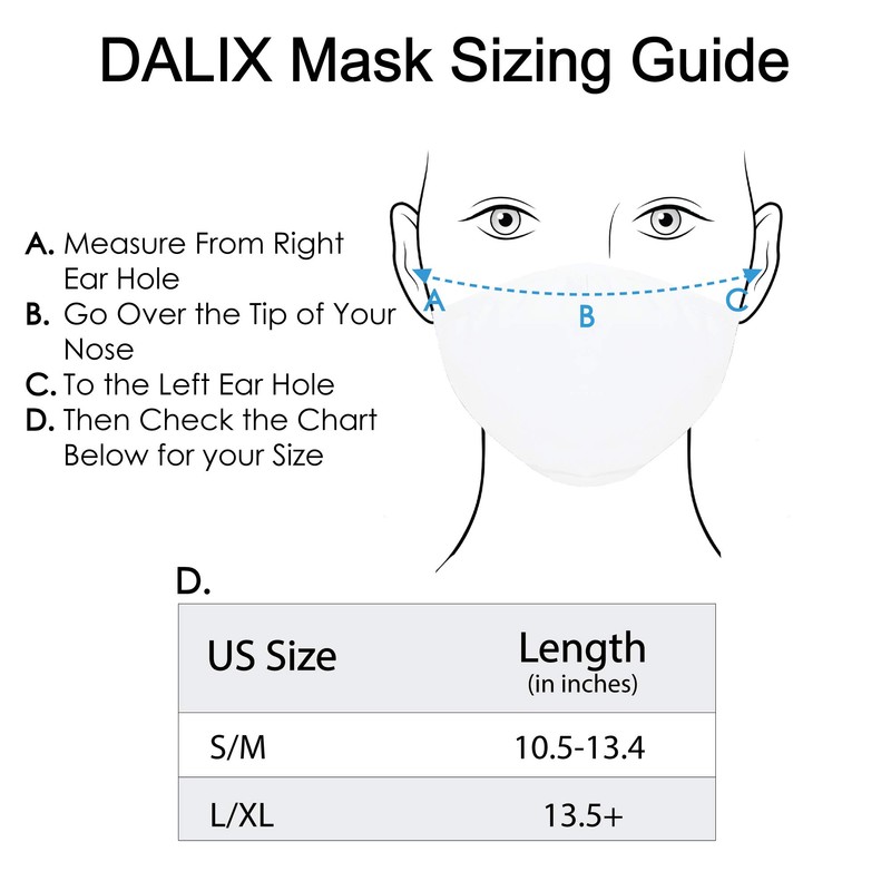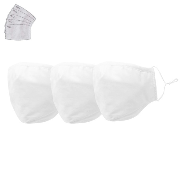 DALIX 3 Layer Cloth Face Mask Filter Pocket Adjustable White USA Made 3 Pack S-M