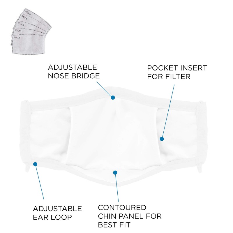 - 3 Layer Face Mask, Filter Pocket with PM 2.5 filter (5 Included)
