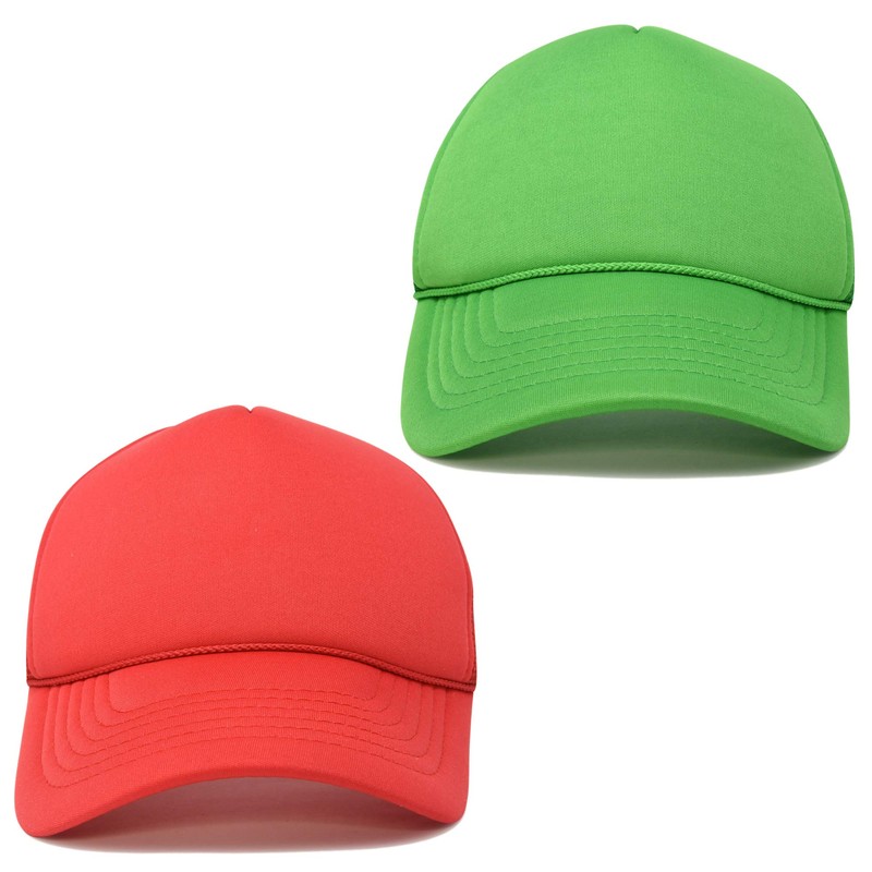 DALIX Solid Blank Trucker Hats Caps 2 Pack in Red and Kelly Green