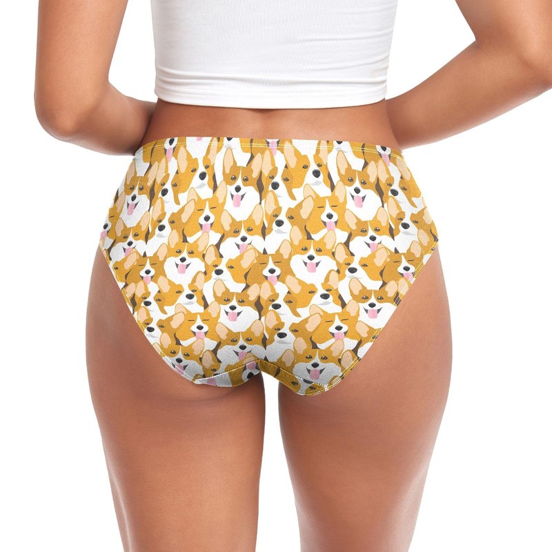 Dallonan Women's Underwear Brief Breathable Soft Knickers Dog Corgi Breed Animal Pattern XX-Large Multi