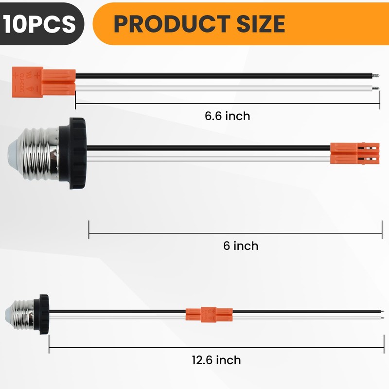 - 𝐏𝐚𝐜𝐤𝐚𝐠𝐞 𝐈𝐧𝐜𝐥𝐮𝐝𝐞: You will receive 10 pcs E26 light bulb socket pigtail; this ample quantity can meet your various usage and replacement needs