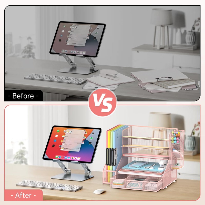 • [STRONG AND ROBUST] Our paper organizer for desk is made of solid metal mesh, soldering is very strong, very robust, together with rubber non-slip pads to prevent sliding, avoid surface scratches. It is a robust desk organizers and storage.