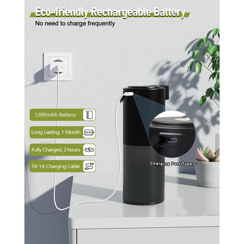 - USB-C fast charging: the soap dispenser can be fully charged within 2 hours with the matching USB-C cable (included) and can be used for more than 60 days when fully charged. The super long battery life is a practical plus that saves the cost and hassle of changing batteries.