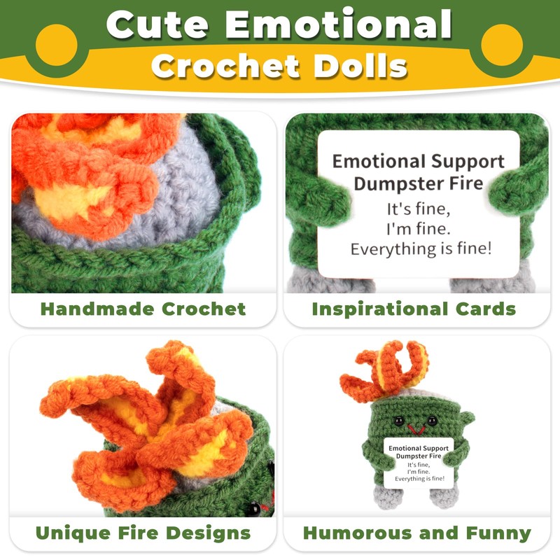 - Perfect Gift Choice: Ideal for friends, family and coworkers, the handmade dumpster crochet fire makes for a thoughtful gift that conveys care and humor, perfect for any occasion, as an encouraging gift or desk accessory, it is great!