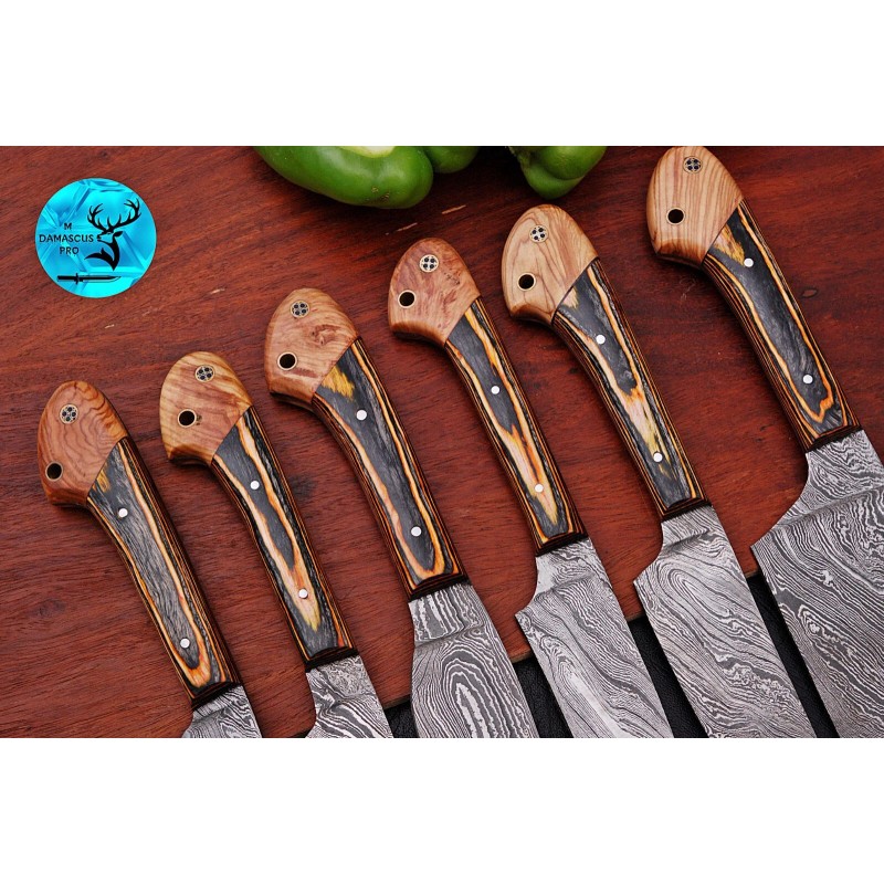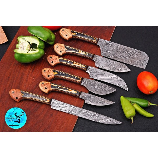 Damascus CUSTOM MADE HAND FORGED DAMASCUS STEEL BLADE CHEF SET KITCHEN KNIFE SET 121