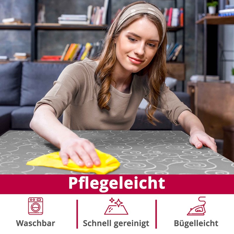 Ornamental tablecloth in different sizes and colours. It creates harmony and class in your guest room, thanks to the colours that are very easy to combine. Ideal for everyday use in your living room, for festive table or in the garden or balcony. Item features: first-class non-fading, beautiful polyester fabric in ornamental look, heavy quality, very high-quality workmanship with curved edge, can be ironed, easy to clean, washable up to 60 °C, can be ironed at level 2. Size selection: The tablecloth should hang down approx. 20-25 cm from the edge. Therefore, you should add 40 - 50 cm to both the width and length of your table when choosing the tablecloth size.