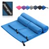 damoguin Set of 3 Microfibre Towels, Large (180 x 80 cm) & 2 Small (80 x 40 cm), Quick-Drying Microfibre Fitness Towels, Sports Towel, Beach Towel, Bath Towel and Travel Towel (Blue)