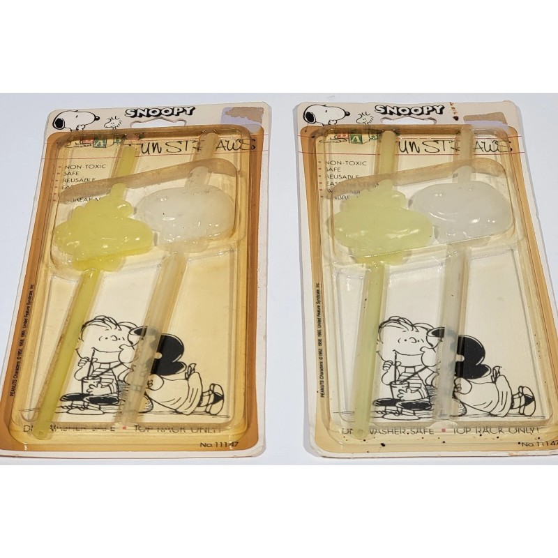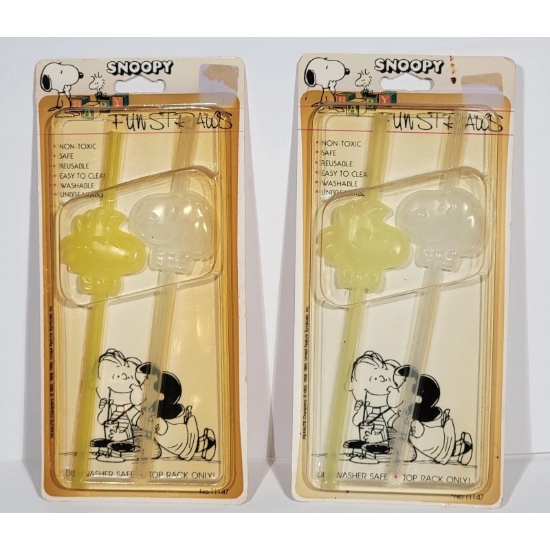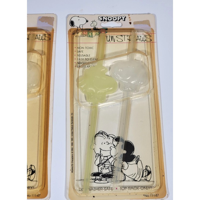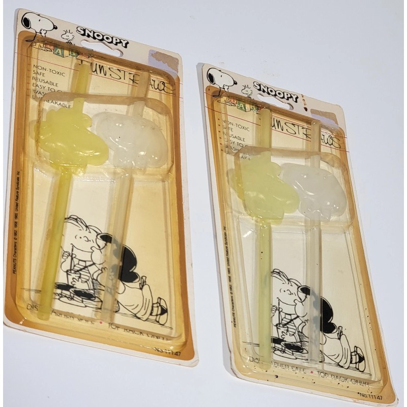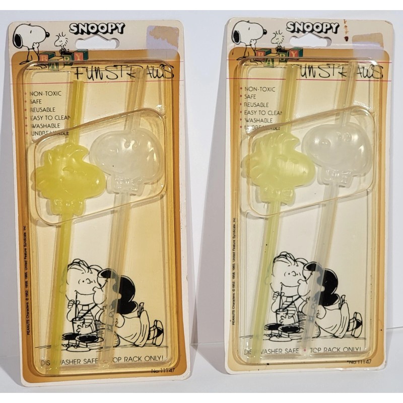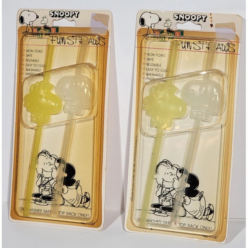 Danara 2 Peanuts Snoopy & Woodstock Vintage Characters Plactic Figural Drinking Straws