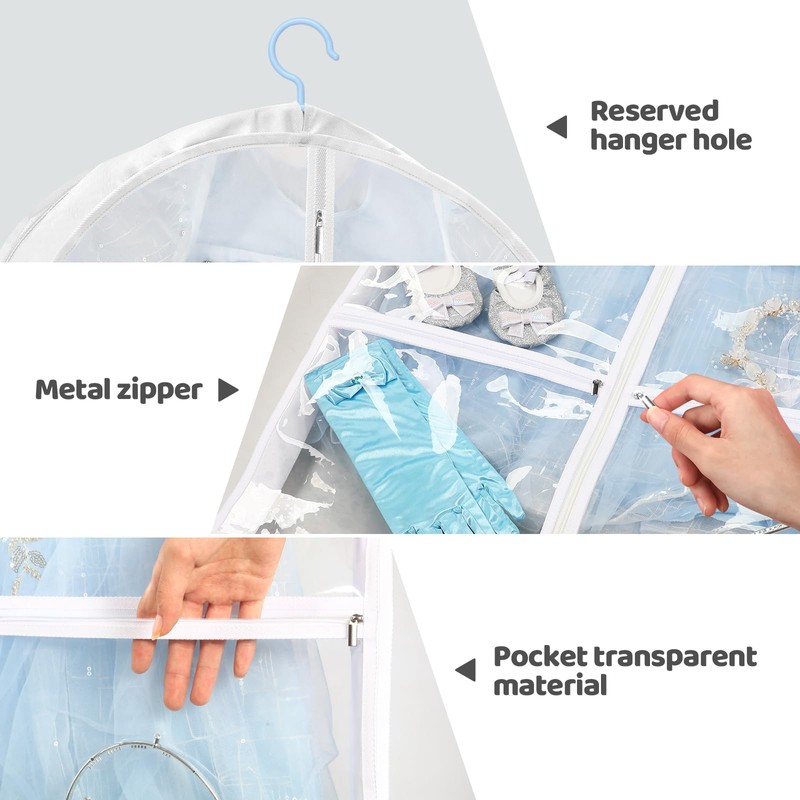 - Size:This garment bags for dance costumes is large enough to accommodate multiple costumes, accessories, and shoes. The spacious main compartment allows for easy organization of different pieces of dance attire.