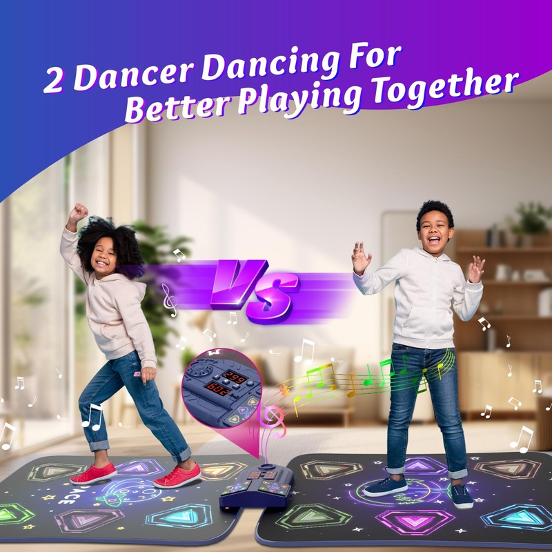 - Light-Up 12-Key Dance Mat: Let your kids better show their advantages on the light-up dance mat! The newest 2-player dance mat with 6/12-button design changes from lighting up, stepping, hopping, and jumping onto the flashing arrows. The combination of dance and music exercises the child's balance and improves body immunity.Parents can also join in the fun,and it's an interesting toy for kids age 3+