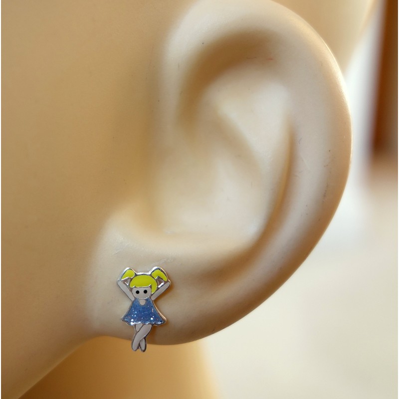 Dancer Earrings with Blonde Hair 925 Sterling Silver