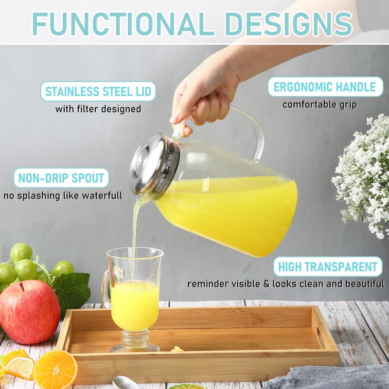 - Reliable Material: our pitcher with spout are made of quality glass and stainless steel material, sturdy and reliable, which can be put directly into the refrigerator, you can use it with confidence