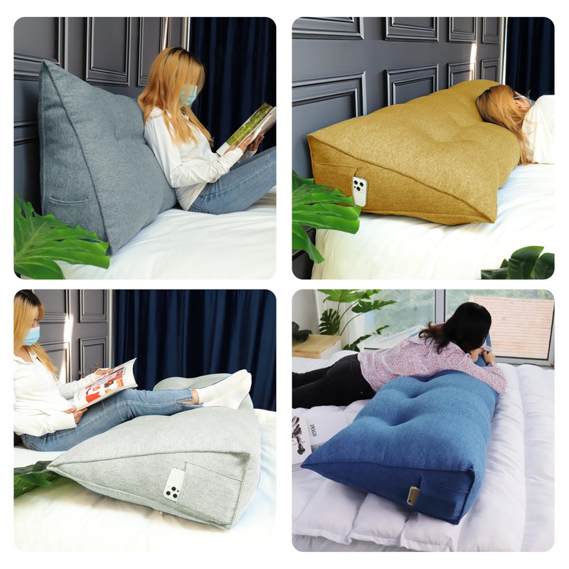 - Unique Triangular Design: Experience ultimate comfort and support with our headboard pillow. Designed with a unique triangular bed wedge shape headboard pillow wedge, this wedge pillow headboard provides essential support to your head, neck, back, and shoulders. Whether you're reading, lounging, or watching TV in bed, this bolster pillow will provide the perfect support needed to sit up straight in comfort.