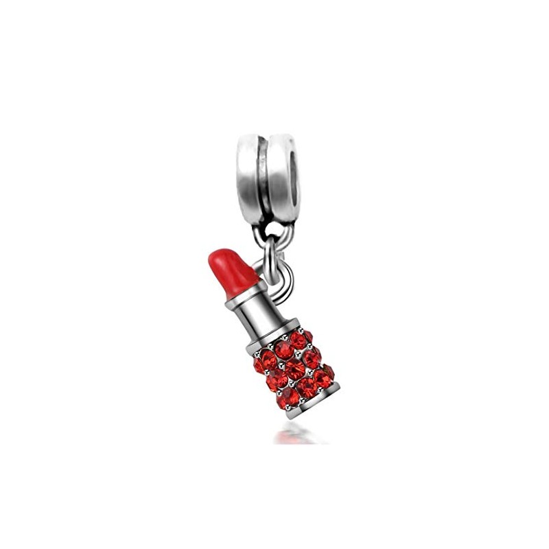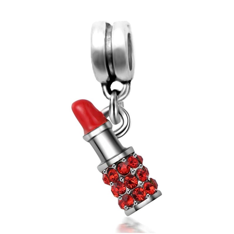 Dangle Red Lipstick Charm with Red Crystals