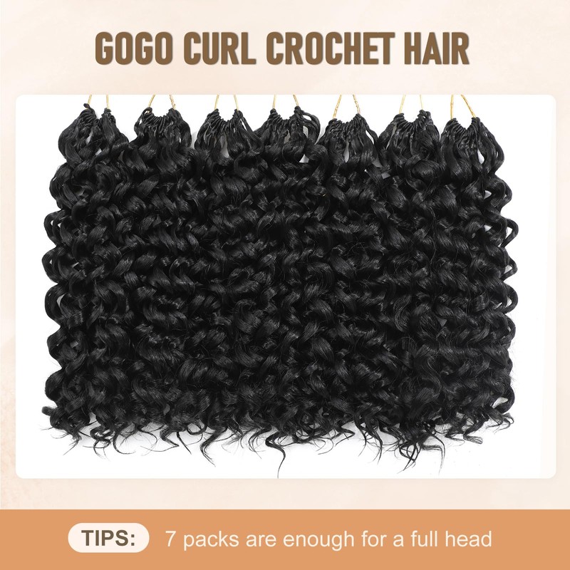 Dansama GoGo Curl Crochet Hair for Black Women: 7 Packs Short Curly Crochet for Water Wave Beach Braids, Deep Twist Synthetic Wavy Braiding Hair (10 Inch, 1B)