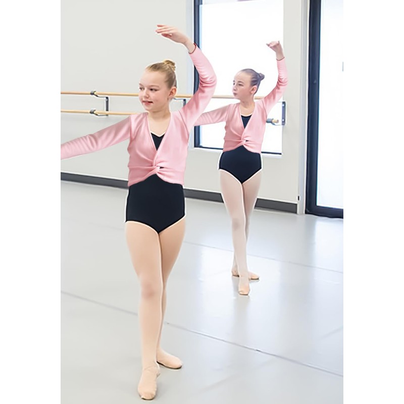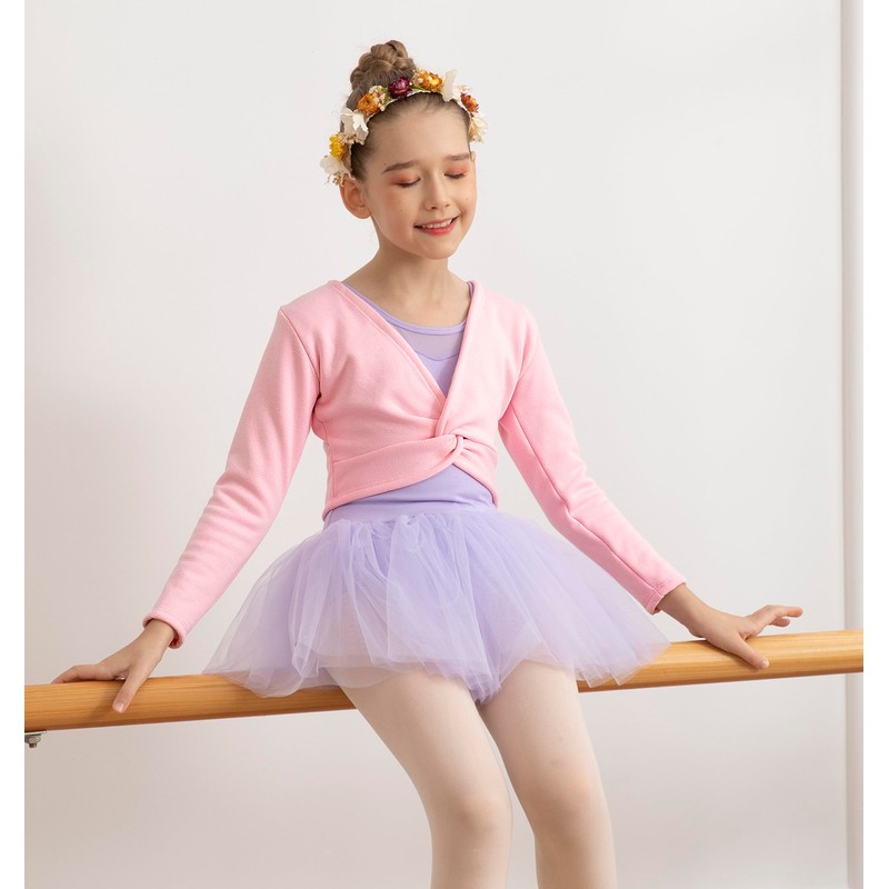 DANSHOW Girls Ballet Wrap Tops Kids Dance Cardigans, Velvet Inner Dance Sweater(824-08-M) Pink