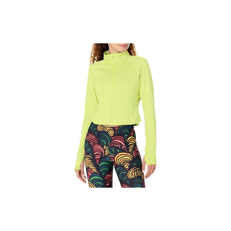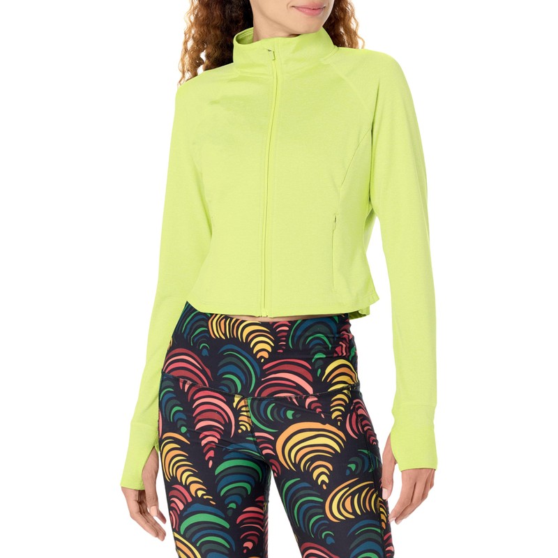 Danskin Women's Cropped Melange Active Jacket, Cyber Lime Heather