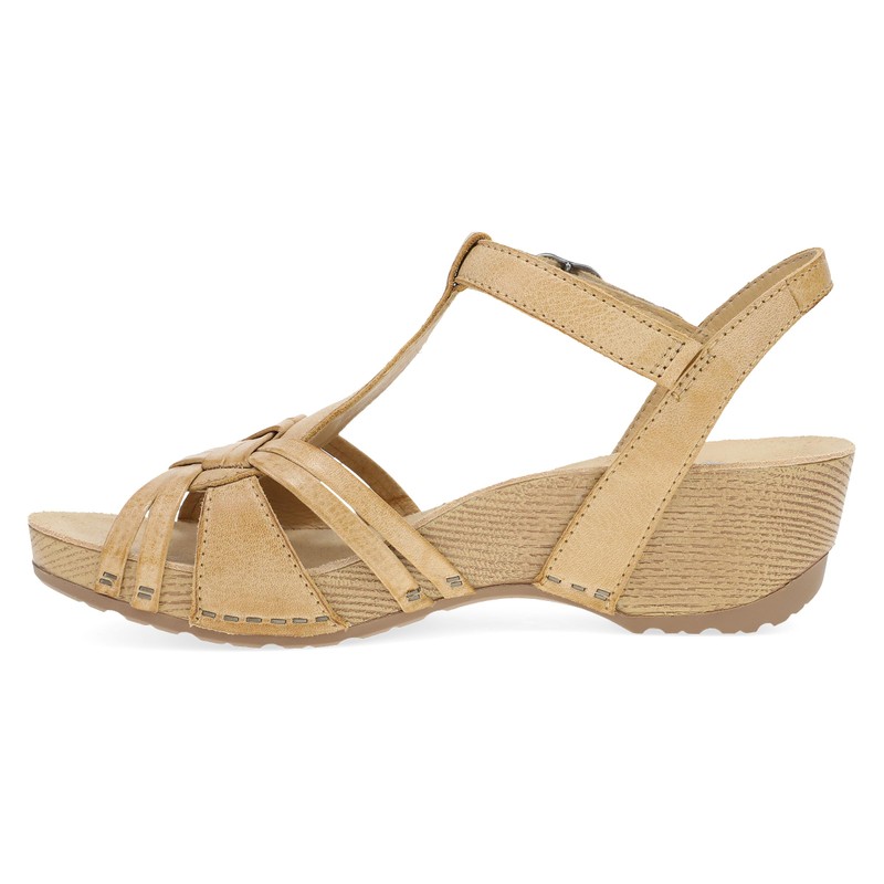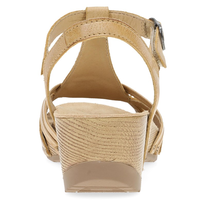 Dansko Tia Fisherman Wedge Sandal for Women - Contoured Footbed for All-Day Comfort and Support – Adjustable Hook & Loop Straps with Buckle Detail Tan 9.5-10 M US
