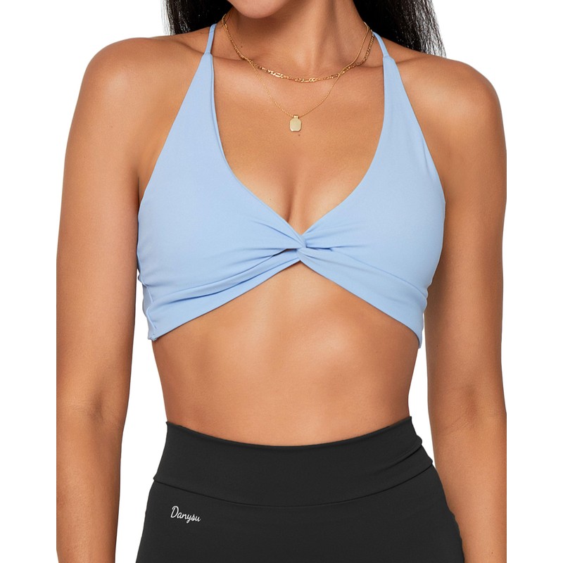 Danysu brasier deportivo sin espalda y suave, con relleno extraíble para entrenamiento de yoga, con tiras para salir, #2.Twirl Front Paradise Blue, M