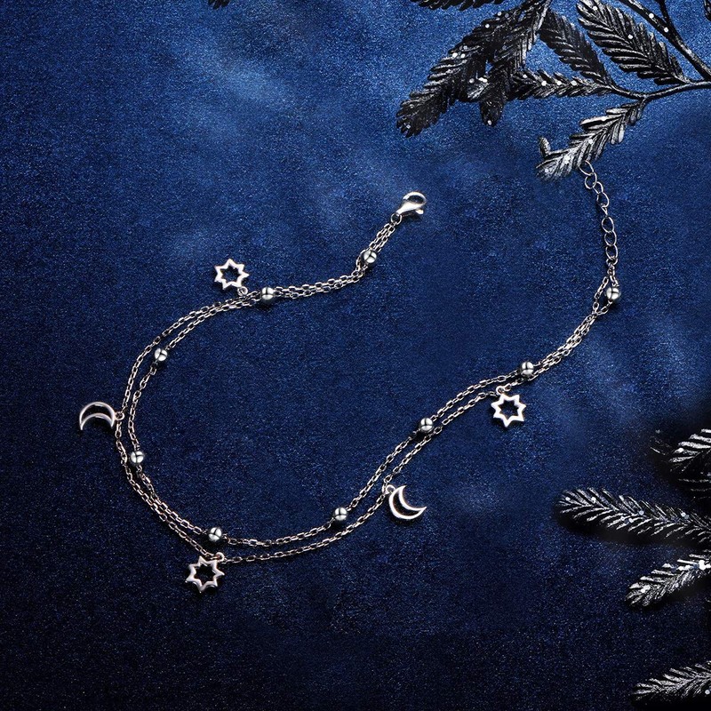 - The Moon Stars Anklet are made of genuine sterling silver, Won't change color or get dark. Nickel Free