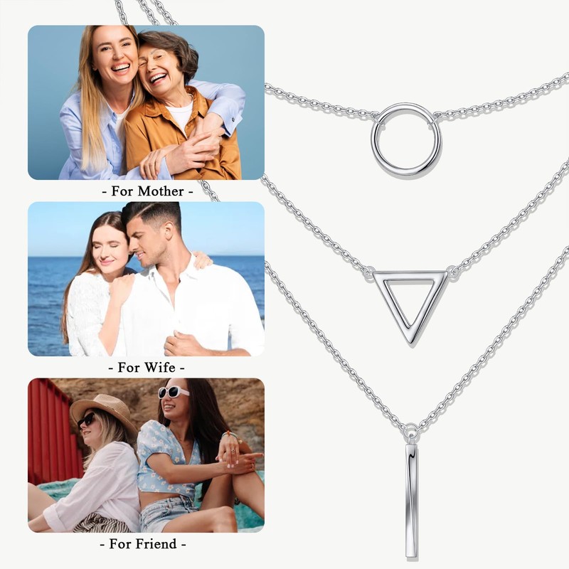 DAOCHONG S925 Sterling Silver Multilayer Layered Triple Long Chain Pendant Necklace for Women Jewelry, common, Sterling Silver, Cubic Zirconia