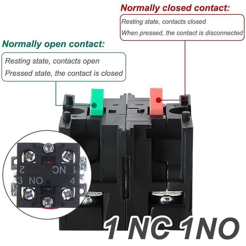 - Work description: NC is a normally closed contact. Press to cut off the power, and release to power on.NO is a normally open contact. Press to turn on the power, release to turn off the power.
