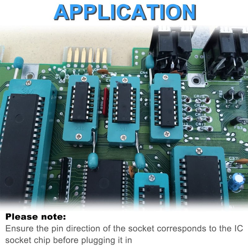 - ⚡[Hassle-Free Programming] Our universal ZIF IC test socket holds microcontroller, integrated circuit chip, breadboard and circuit board firmly during programming